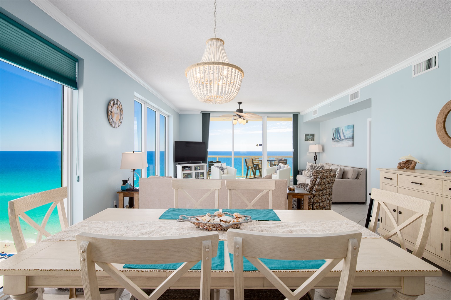 This beautiful condo is located on the 15th floor East side of Caribbean Resort Sleeps 10 and has plenty of room for the entire family. (Beach Service Included : 2 chairs, 1 umbrella, .) Panoramic views from of the Gulf of Mexico as you enjoy your morning coffee. From this height, dolphin watching is not a problem. Spacious kitchen with all the amenities of home. This unit also has a kitchenette located in the front master lockout room. The front balcony has views of the Sound and limited views of the Gulf. The main balcony has direct views of the Gulf with access to the Master Bedroom. Floor to ceiling windows at Caribbean Resort allow views from almost anywhere in the condo. Don't miss out on this relaxing retreat from everyday life. Beach service included (2 Chairs, 1 umbrella)