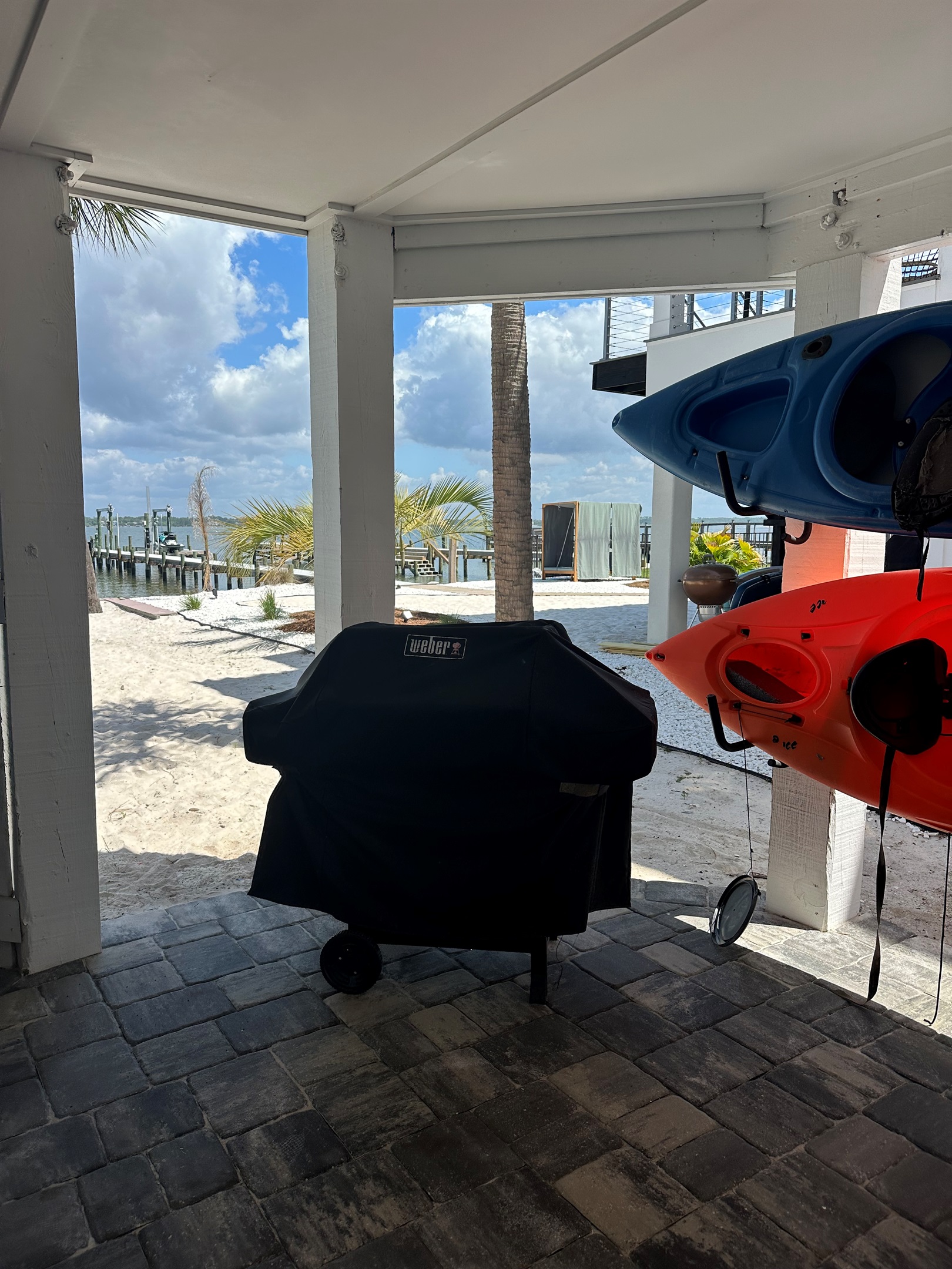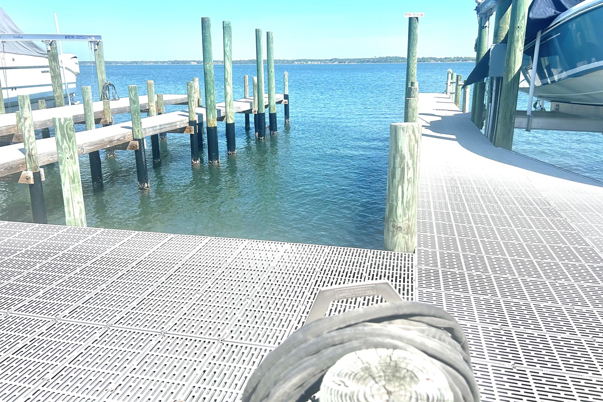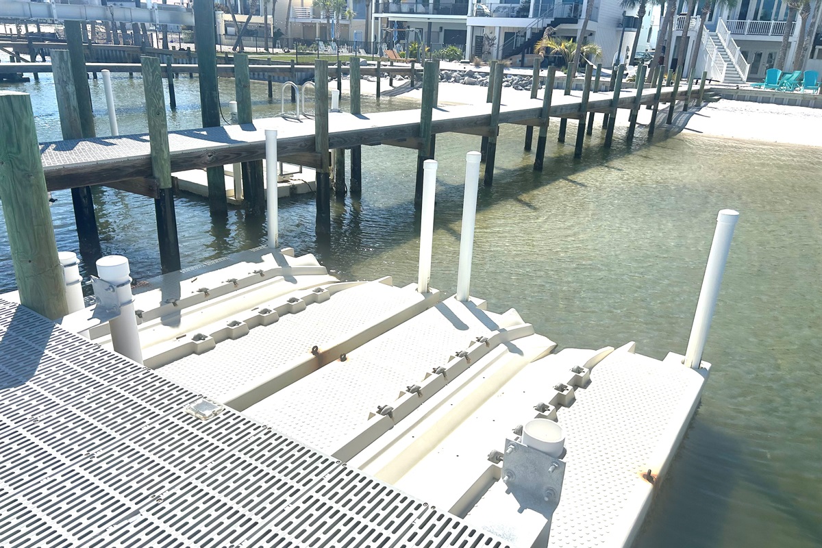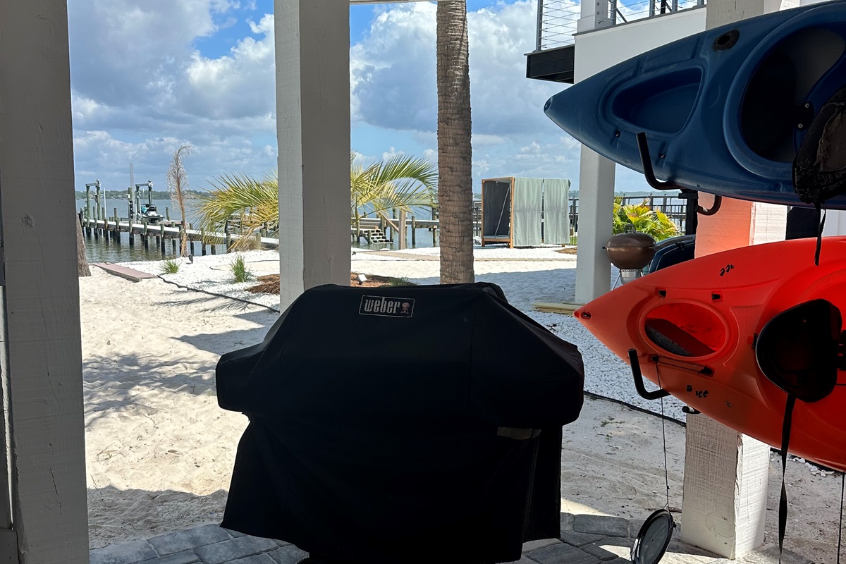 The large private pier is ideal for fishing, offering the perfect spot to cast a line and unwind, and also provides space to bring your boat and jet skis for easy access on and off the water.The Gulf of Mexico is just a short walk away.