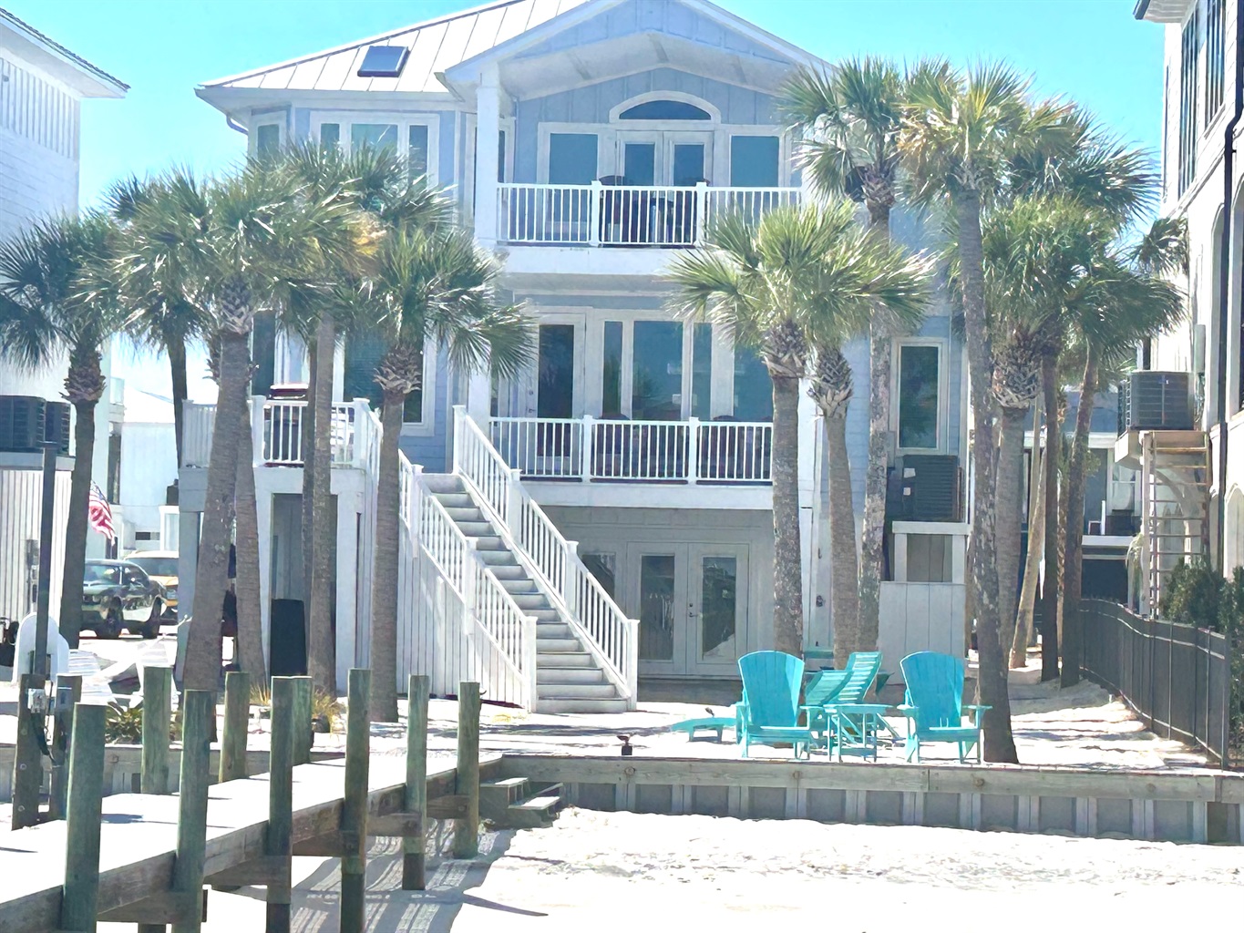 This spacious and private three-story home features 5 bedrooms and 3.5 bathrooms, ideally situated on the tranquil sound side with its own private white sand beach and dock. Enjoy calm, shallow waters just steps from your door—perfect for relaxing, swimming, or launching a kayak.